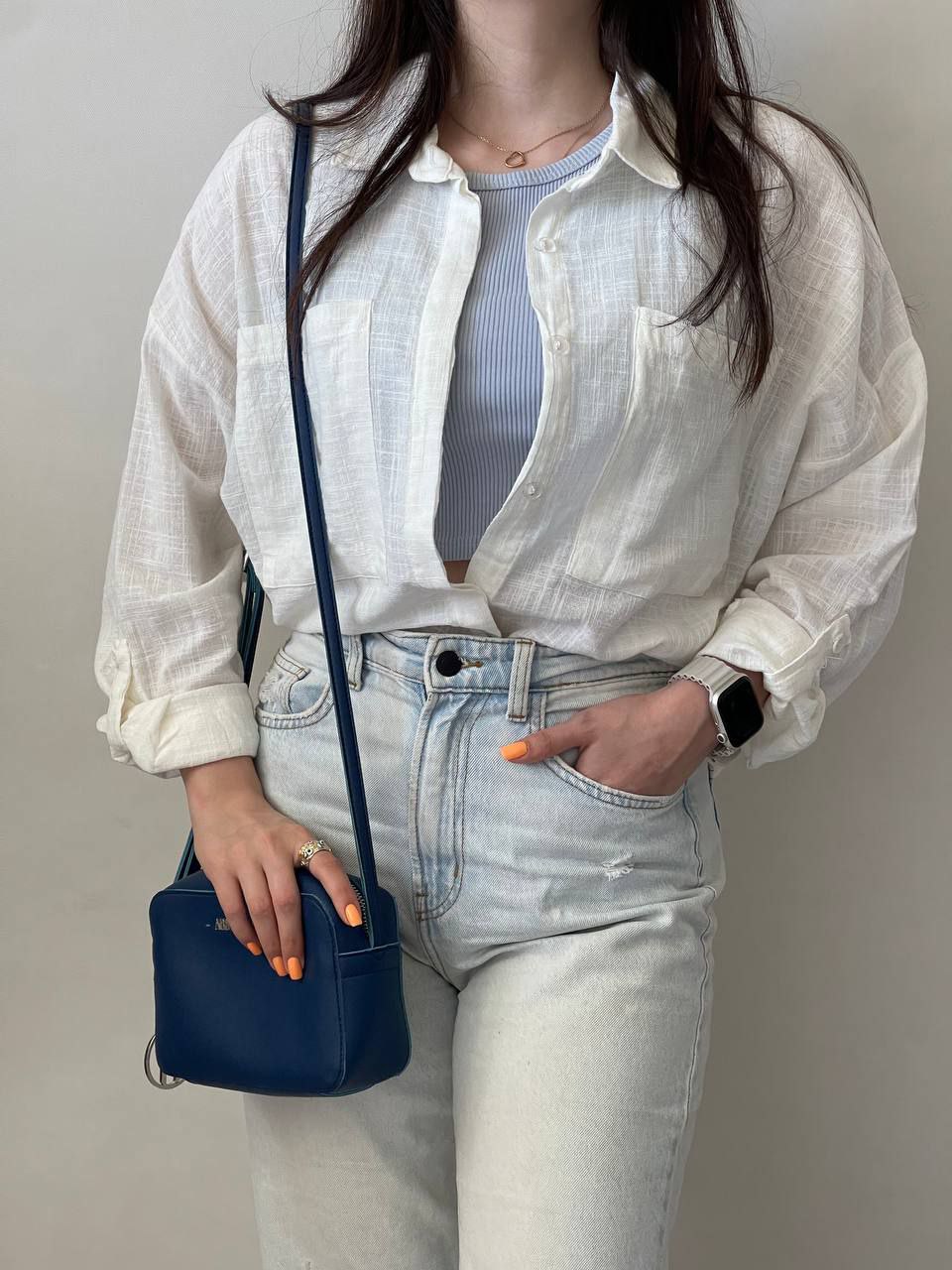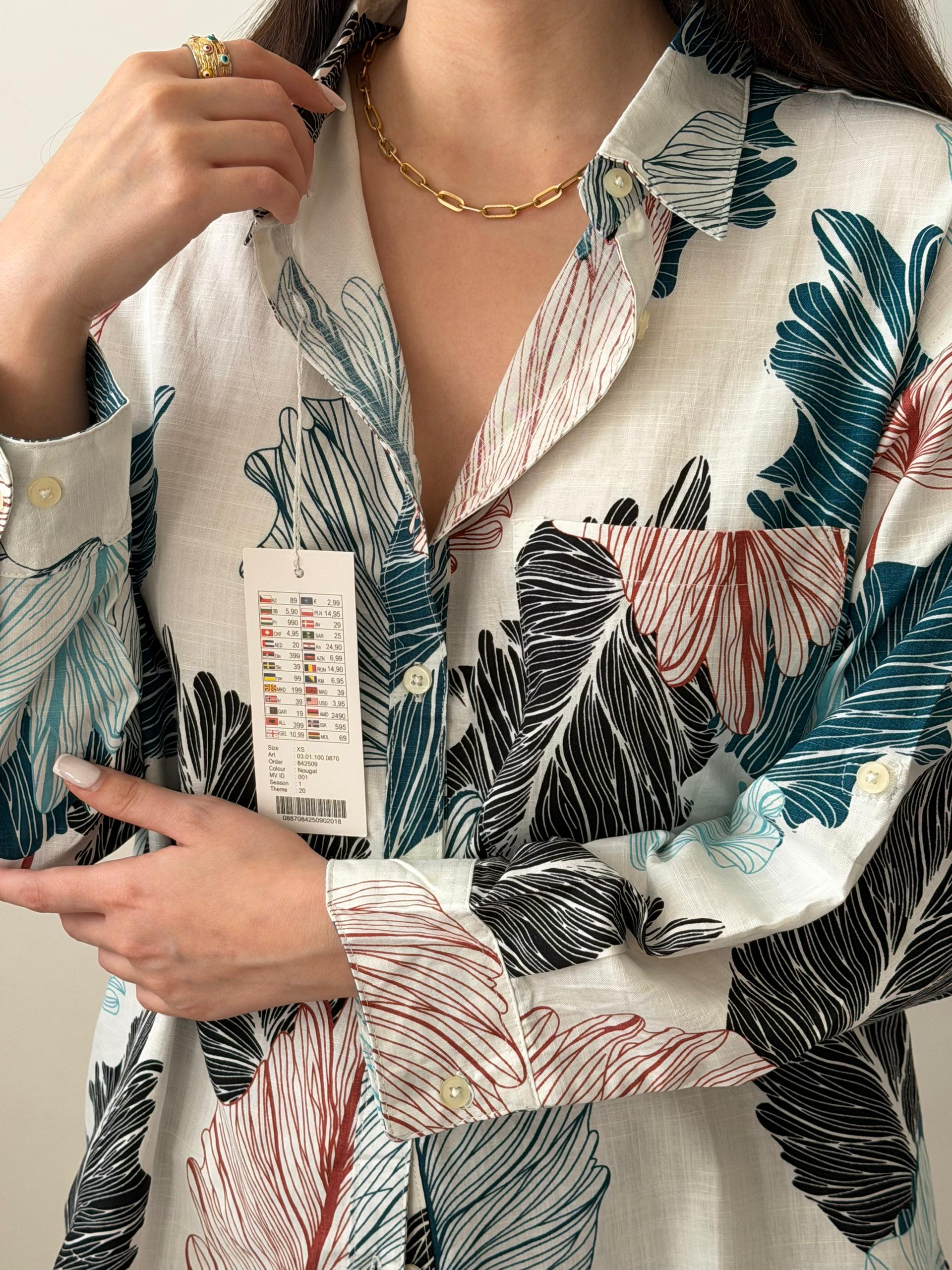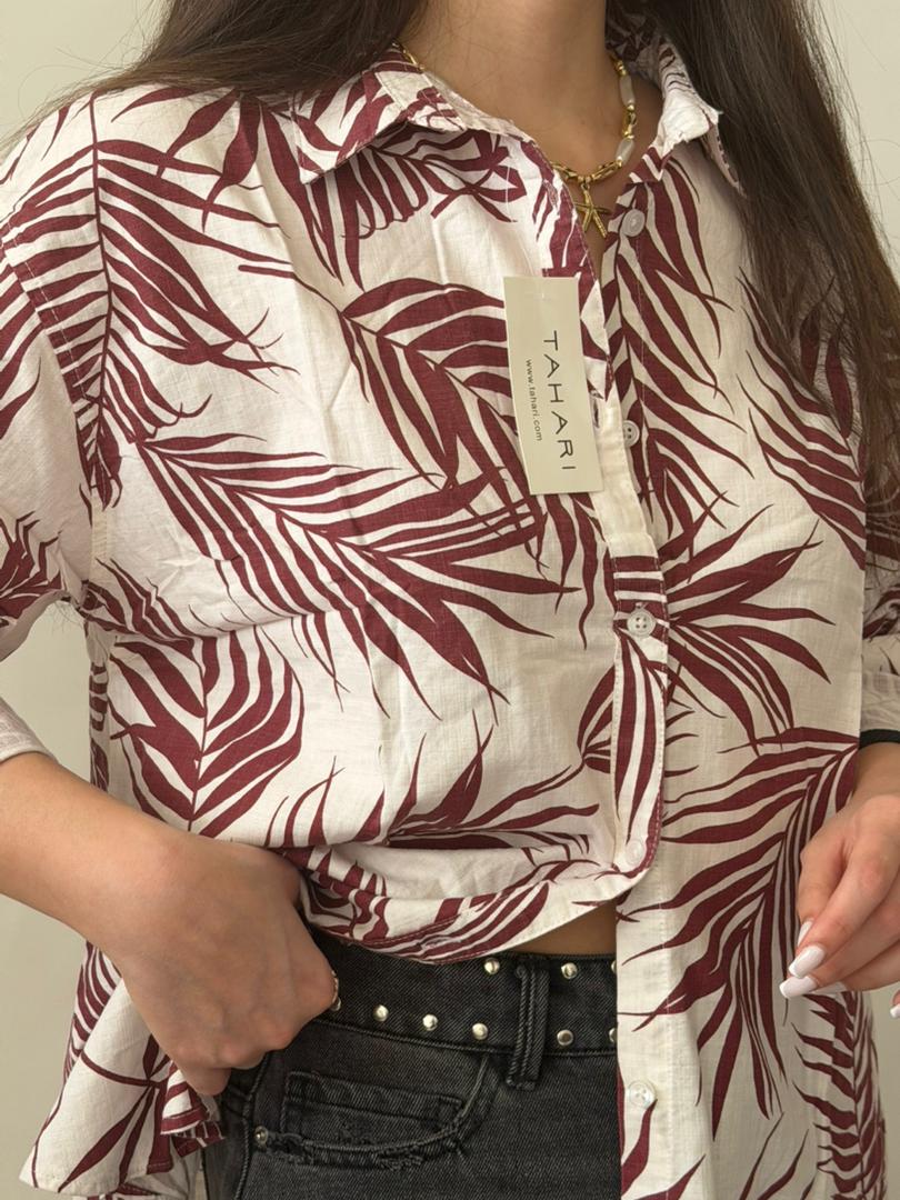 شومیز لینن ۱۰۰٪طرح برگ Amisu