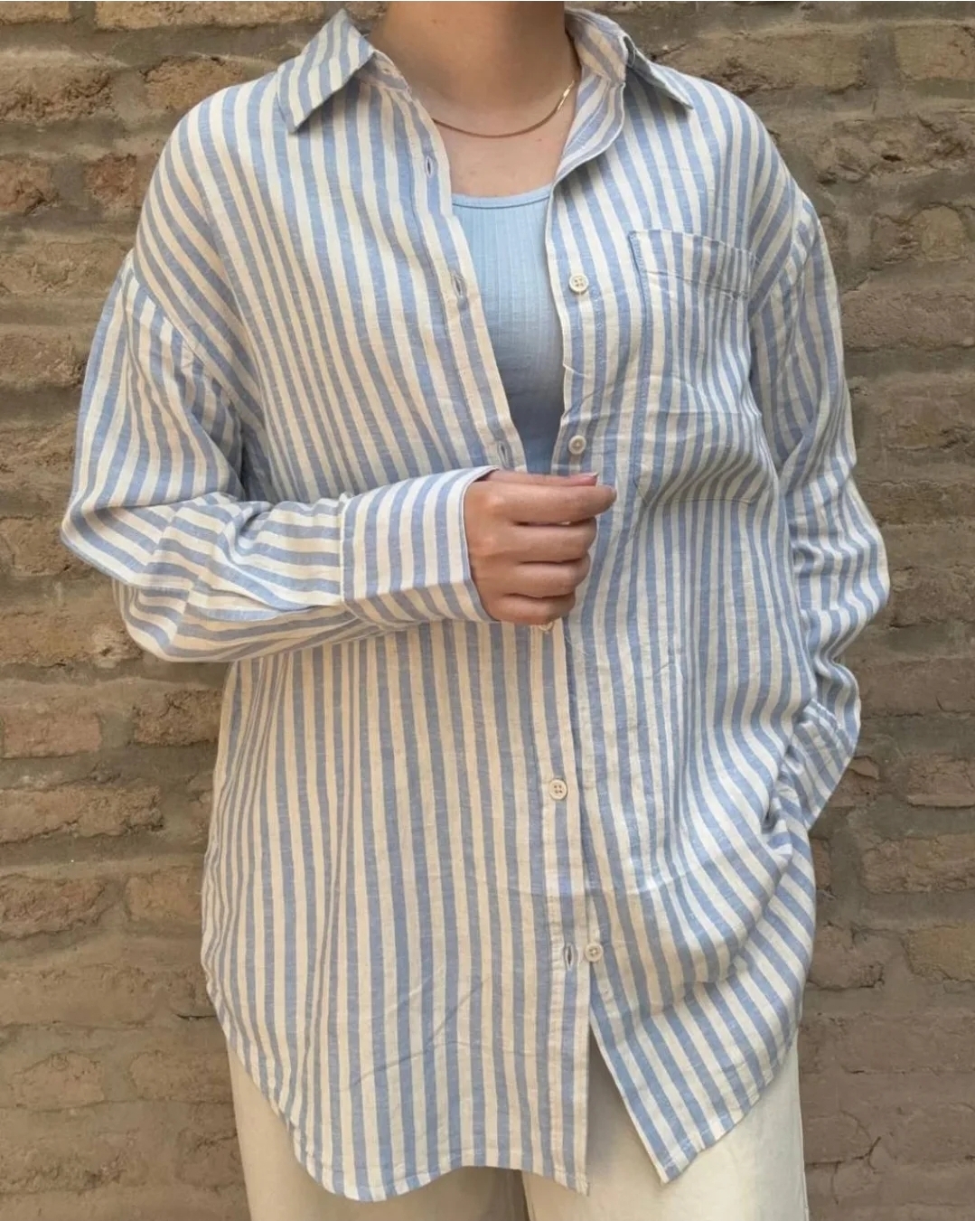 شومیز لینن راه راه بغل دکمه آلمانی Cecil